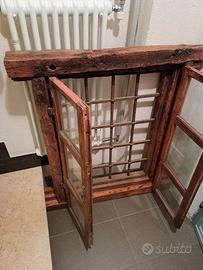 Vendo finestra antica completa di grata e telai interni con vetro. Già restaurata. Ottima per ambienti rustici in stile montano.