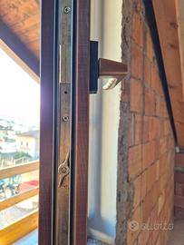 Finestra doppia apertura con vetro 4/20/4, con doppia guarnizione spessore 70mm, in legno Douglas. Misure 140xh150cm + sopra luce h80cm (che si può eliminare). In ottime condizioni. Marca Sudtirol Fenster.