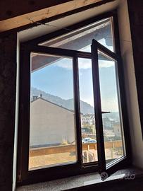 Finestra speculare doppia apertura con vetro 4/20/4, con doppia guarnizione spessore 70mm, in legno Douglas. Misure 140xh150cm + sopra luce h80cm (che si può eliminare). In ottime condizioni. Marca Sudtirol Fenster.