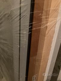 Finestra di legno all’interno verniciata di bianco con alluminio grigio esterno. Triplo vetro. Nuova, imballo originale, mai montata.