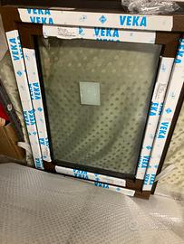Serramento in PVC modello Prestige 76, assemblato con profili Veka in classe A, mescola S, finiture di colore Noce. Serramento completo di accessori di prima scelta serie Roto con antaribalta, tre guarnizioni di sistema a cuscinetto d'aria e tutto il necessario per la posa in opera ed il loro corretto funzionamento. Cerniere con Finiture di colore Argento. Tamponamento effettuato tramite vetrate termoisolanti Antinfortunio composte da: 33.1 – Canalina Termica da 15 mm con Gas – 33.1 a Basso Emissivo Ug 1.0