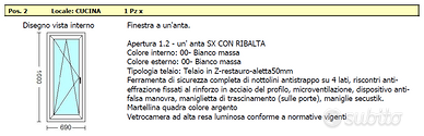 VENDO FINESTRA IN PVC SCHÜCO LINEAR DOUBLE – 1 ANTA SX CON RIBALTA – CAUSA MISURE ERRATE - PAGATA 880 € IVA COMPRESA