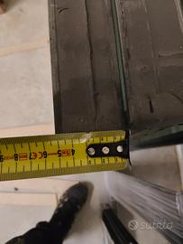 Finestra a due battenti in legno di abete ancora da verniciare int. est. alluminio finitura antracite, completa di vetrocamera dello spessore 52mm triplo vetro con veneziane elettriche.Dim.est. telaio L 185,5 x H 102,5 cm.