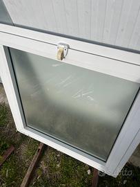 Finestra in alluminio bianco, completa di vetro satinato, apribile a wasists dimensioni L 870 x H 880