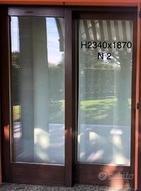 Vendo finestre e persiane in legno. Le misure sono presenti sulle foto. Le finestre sono tutte a battente tranne le due scorrevoli h2340x1870. Vendo anche porta di ingresso. Le finestre sono doppio vetro. In aggiunta vendo persiane in legno.