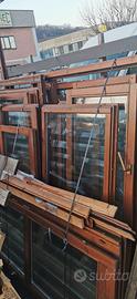 regalo finestre e porta ingresso tre ante in buono stato di legno di varie misure complete di telaio per fissaggio e doppio vetro
