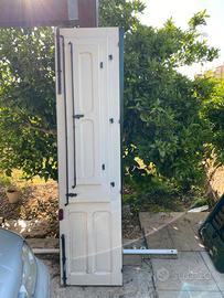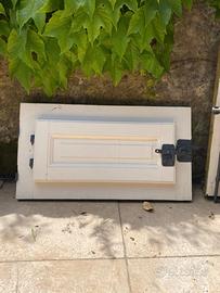 Disponibili 4 finestre ed un portoncino a due ante in legno costruiti negli anni '50, appartenenti alla stessa serie. Le finestre hanno tutte dimensione 71 x 120 cm mentre ciascuna anta del portoncino ha dimensioni 53,5 x 212 cm. Sia le finestre che la porta montano nella porta superiore un ulteriore finestrella di medesima larghezza ed un'altezza di 40 cm. Sono tutte perfettamente funzionanti negli ingranaggi e ben tenute. Purtroppo i controtelai sono da rifare perché usurati dal tempo. Prezzo trattabile. Se acquistati tutti insieme € 200.
