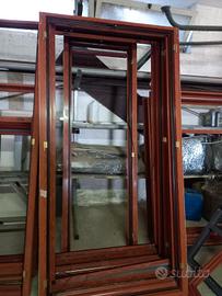 finestre in alluminio taglio termico R50 bombate doppi vetri molati color ciliegio complete di telaio cerniere e maniglie in ottone color oro misure n 5 2,30x 1,38 € 350 cadauno n 3 2,30x 80 € 250 cadauno n 1 1,37 x 1 ,70 € 350 n 3 1,37x 1,18 € 250 cadauno tutto il blocco € 3500