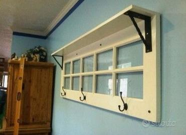 N° 4 coppie di finestre in legno antiche con maniglie dell'epoca. Adattabili anche per riciclo creativo come da idee proposte in foto. Misure: 190 cm x 50 cm ad anta. Prezzo riferito a coppia.
