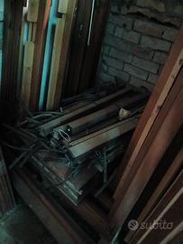 Finestre in legno di varie misure, predisposte per vetrocamera, senza vetro, mai installate con telaio di fissaggio e zanzariere.