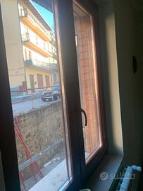 vendo infissi a monoblocco con persiane in alluminio colore mogano ed infissi interni in legno rovere rosso lamellare tinta mogano, vetro in camera 33.1/18/4 il tutto completi di sistema anta a ribalta