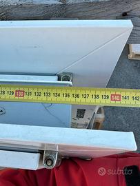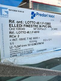 4 finestre a due ante in pvc bianco massa, misura 1355 mm x 1405 mm complete di antaribalta e accessori bianchi (maniglie e copri cerniere), marchio Italiano ELLEDI, battute da 40 mm su tre lati, refilata a zero l’aletta sotto, vetro camera. Prezzo di realizzo 300 Euro cadauna. Solo ritiro in sede no consegna.