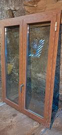 Numero 3 finestre tinto legno tagliotermico con vetro camera 4/18/4. Misure:altezza 155 larghezza 111,5 due finestre uguali finestra (bagno) con vetro stampato C altezza 156,5 larghezza 57