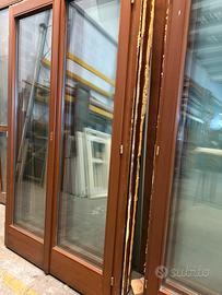 Finestre in legno colore noce chiaro in ottime condizioni con vetrocamera montato e ferramenta di portata e di chiusura. Maniglie incluse nella fornitura.
