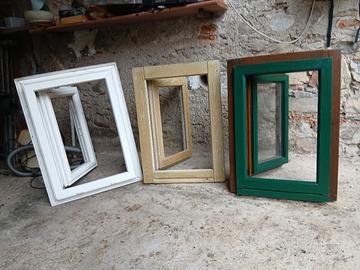 due finestre di legno una senza vetro,e una di alluminio senza vetro