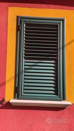 finestre alluminio legno con persiane e zanzariere color venghè la parte di dentro legno verde fuori come in foto