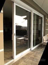finestrone pvc nuovo misure 130x213 color noce chiaro 5 camere vetrocamera gas argon certificata basso emissivo bellissima saldature invisibili 10 anni garanzia
