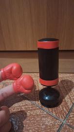 Finger Boxing da scrivania. Simpatico mini-gadget, tascabile o da scrivania. Usato ma in buone condizioni. Finger-Bordsjov (Finger table fun) divertente e in stile cartoon. Provvisto di apposita scatola in cartone di colore giallo. Colore del piccolo finger boxing: rosso e nero. Misure: diametro 3cm, altezza 7cm, altezza completa con base e ventosa 12cm. N.2 guanti da boxe per dita (rossi).