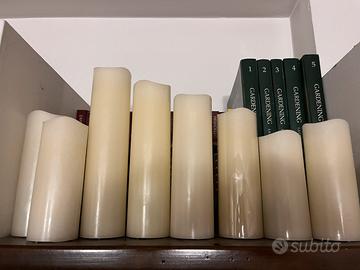 8 finte candele led di diverse altezze da accendere con due pile da 1,5 V AA - timer - diversa intensità- con telecomando