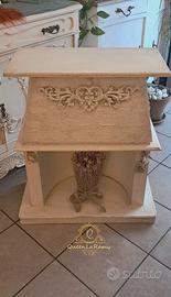 finto caminetto in legno sottoposto a restyling in stile Shabby Chic con contenitore a ribalta. misure 78x36 altezza 80cm