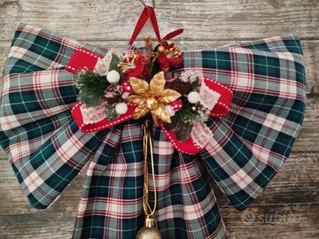 Grande fiocco in tessuto scozzese con decorazioni natalizie.