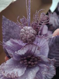 24 Magnolie in stoffa con anima in metallo. Nuove ancora con il cartellino color Pervinca glitterate per decorazioni varie