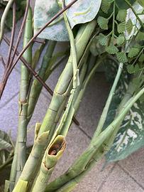 Fiori artificiali finti vari tipi. Condizioni scarse: mancano alcuni fiori, rametti spezzati, petali afflosciati,...