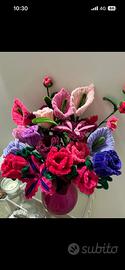 Splendido bouquet di rose , calle , tulipani , gigli e rami di fiori in colori vivaci .