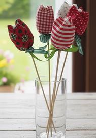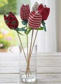 Set di cinque tulipani in tessuto realizzati a mano con stelo di legno.