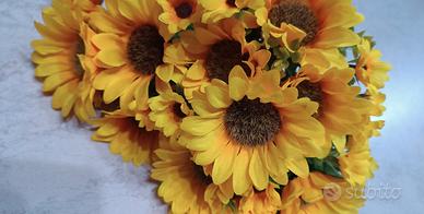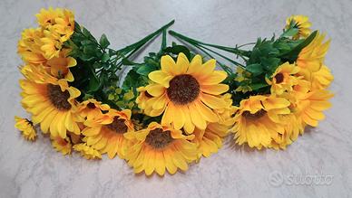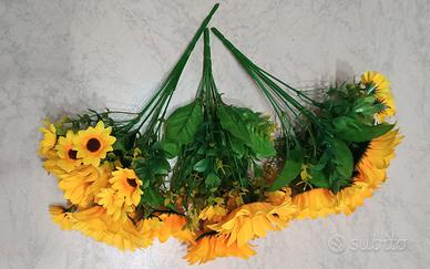 Tre mazzi di girasoli finti. Altezza cm 25-26-29. In ottime condizioni