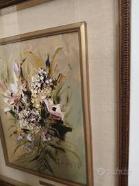 dipinto, probabilmente un olio su tela, intitolato "Fiori" e firmato "Francesco Zan".