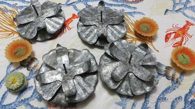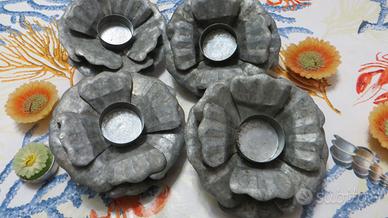 introvabili 4 fiori in peltro eccellenti condizioni diametro cm 14 x 4 lunghezza totale con stelo cm 84 diametro candela cm 4