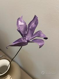Fiori metallo artigianali, varie forme (rosa, orchidea). Possibilità di smalti colorati. Il gambo è in filo metallico malleabile per poter variare la disposizione del fiore stesso. Prezzi variabili a seconda della tipologia di fiore: