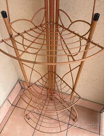 Vendo grazioso scaffale porta-vasi angolare in metallo color ruggine/bronzo, dal design classico ed elegante, perfetto per ottimizzare gli spazi in balcone, in terrazzo o anche in un angolo luminoso della casa.