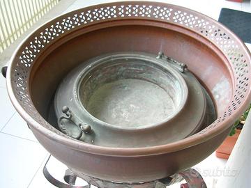 Può contenere un antico braciere di pregiata fattura completo di maniglie in bronzo isolanti per la presa.