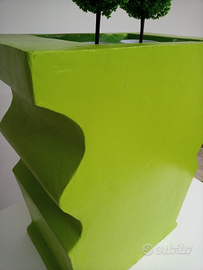 Stupenda fioriera di design, realizzata interamente a mano, pezzo unico, colore verde mela. Nuovo. Misura 70x40x30