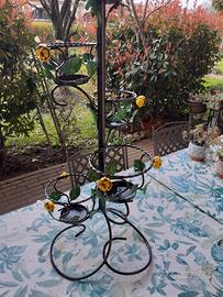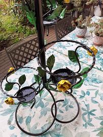 vendo fioriera vintage in ferro battuto con foglie e roselline gialle può contenere 5 vasi completamente ristrutturata a smalto altezza 1 metro ritiro a mano a Cremona pagamento in contanti 120 euro non spedisco