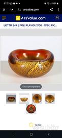 Bellissima ciotola in vetro sommerso di murano con inclusione di foglia oro. Non ha firma ma è periziata da una nota casa d'aste italiana.
