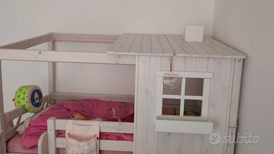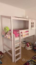 Letto bambini Flexa Lissone classic con materasso Letto con materasso elevato con casetta e scala misure 200*90. Disponibile anche il secondo letto con materasso e cassettiera per realizzare la composizione a castello. Ritiro Roma.