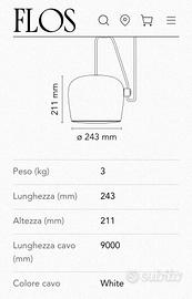 splendida AIM della Flos come da indicazioni , SVENDO al primo interessato per cambio casa . perfetta con cavo da 3 metri al momento cablato per presa . presente il rosone originale da soffitto . NO PERDITEMPO NO OFFERTE . NON SPEDISCO SOLO RITIRO A MANO ( non chiedete se spedisco )