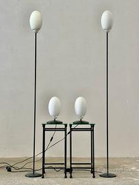 2 Flos Brera F3: Costituite da una base circolare in metallo verniciato grigio antracite di 20 centimetri di diametro, con stelo. Sostiene un diffusore in vetro opalino bianco opaco (diametro cm.52 e altezza cm.27) a forma di uovo. Sorgente E27, lampadina inclusa. Altezza 197 cm.