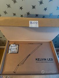 Apparecchio di illuminazione da tavolo orientabile a luce diretta. Corpo in alluminio verniciato o cromato, con testa, giunti e forcelle pressofusi, e bracci estrusi. Diffusore in policarbonato fotoinciso e metalizzato sul perimetro. Fonte luminosa con tecnologia Edge Lighting. Interruttore ottico posizionato sulla testa che garantisce le funzioni dimmer 3-step e regolazione della temperatura colore a 2700 o 3200K. Cavo elettrico lunghezza utile 150 cm. Power supply su spina con plug intercambiabili.