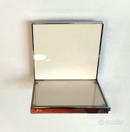 Lampada a parete a luce indiretta. Corpo in alluminio pressofuso, con finitura lucida. Diffusore stampato ad iniezione in PMMA fotoinciso. Fregi estetici disponibili in varie versioni:PMMA colorato, pannelli a scelta tra legno nobile, metallo o immagine fotografica. Attacco a muro in PA66, stampato ad iniezione. Alimentatore integrato nell’attacco a parete. L’illuminazione avviene tramite una Light Guide appositamente studiata che permette di avere un flusso luminoso orientato in modo ottimale, concedendo un confort luminoso senza confronti. L’efficienza di questo innovativo sistema di illuminazione, pari al 98%, concede di sfruttare senza perdite la potenza dei led utilizzati.