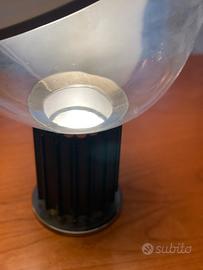 Lampada da tavolo a luce indiretta e riflessa, progettata per Flos da Achille e Piergiacomo Castiglioni. Dimmer Incluso. Altezza cm 48,5. Riflettore in metallo verniciato di colore bianco lucido a liquido internamente e bianco a polvere esternamente. Diffusore orientabile in vetro trasparente soffiato a bocca. Corpo in alluminio estruso verniciato di colore nero opaco o anodizzato argento. Base di acciaio lucidato, nichelato e zapponato.