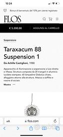 Apparecchio di illuminazione a sospensione a luce diretta e riflessa. Struttura composta da 20 triangoli in alluminio lucidato stampato. 60 lampadine led, alloggiano attorno alla struttura. Attacco a soffitto e rosone.