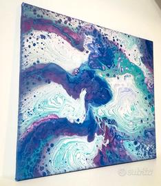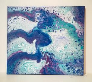 Quadro moderno astratto, dipinto a mano, unico ed originale con la recentissima tecnica della fluid art, dove le campiture di colore scorrono fluide e organiche.