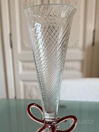 Flute da collezione in vetro soffiato, trasparente con dettagli rosso rubino, modello BIBI II di Borek Sipek per Driade