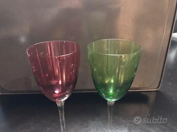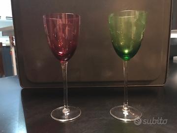 Flûte in vetro di Murano della pregiata casa Nason Moretti. Due pezzi, uno verde ed uno color rubino.