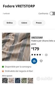 Vendesi causa errato regalo set completo ,nuovo,sigillato,fodere divano modello vretstorp 3 posti ikea.