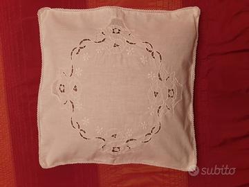 Cotone con ricami ad intarsio. Misura 40 x 40 e 48 x 48.